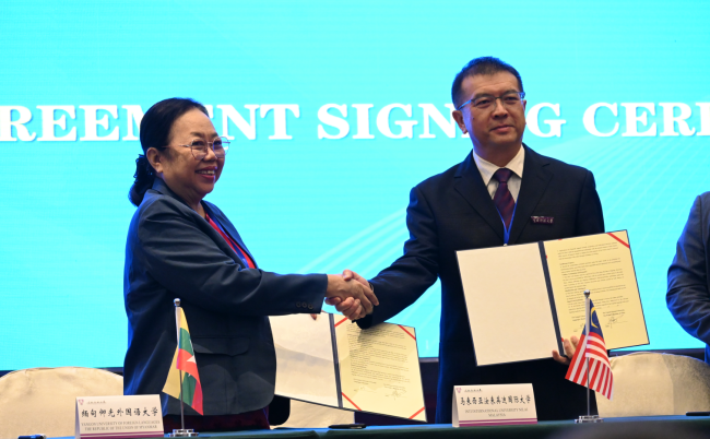 王会昌在讲话中指出,推动南亚东南亚国际中文教育高质量发展,既是满足经贸合作的现实需要,也是深化人文交流、增进民心相通的重要举措,对促进区域繁荣发展与和平稳定具有重要意义。下一步,语合中心将与云南省教育厅及省属大学进一步密切合作,做好以下四方面工作:一是加强中外政府间中文教学合作,商签合作协议,推动更多中小学开展中文教育。二是与更多中外大学合作,推动建立设立中文专业。语合中心将通过国际中文教师奖学金、“新汉学”计划,支持优秀学生的培养。三是与更多职业院校合作,推动职业中文领域标准、师资、资源、课程、机构以及办学理念高质量走出去,推动中文教育与职业教育协同发展、深度融合,为海外中资企业培养更多通中文、懂技术、精专业的复合型人才。四是与云南省高校合作,为国际中文教育高质量发展、“一带一路”建设提供服务与支持。