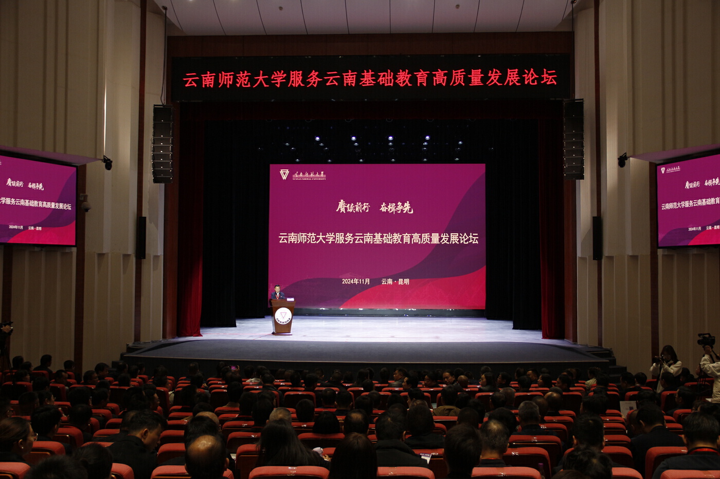 11月2日,德赢官网Vwin服务云南基础教育高质量发展论坛在呈贡校区举办。相关专家学者、校友代表,昆明、昭通、玉溪等7个州市教体局及26个县(区、市)人民政府、教体局相关领导,19所县(区、市)中小学、幼儿园书记、校长、园长,德赢官网Vwin各部门、各学院(学部)党政主要负责人,各附属中小学和幼儿园相关负责人,德赢官网Vwin合作、帮扶学校的书记、校长等340余人参加论坛。