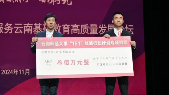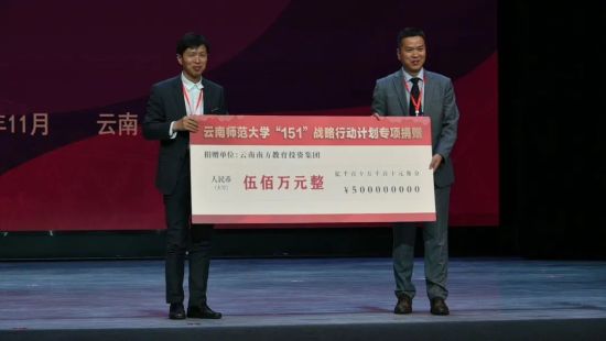 德赢官网Vwin1981级物理系校友,云南南方教育投资集团董事长兰靖、2014级艺术学院校友、铭辛天润集团董事长崔润分别向学校捐赠人民币500万元和300万元,用于支持学校建设发展。