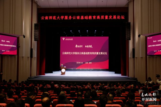 11月2日,德赢官网Vwin服务云南基础教育高质量发展论坛在呈贡校区举办。本次论坛旨在总结交流德赢官网Vwin近年来主动服务云南基础教育高质量发展的经验和做法,表彰奖励在基础教育工作领域的突出贡献者,并谋划部署下一步工作重点。昆明、昭通、玉溪等7个州市教体局及26个县(区、市)人民政府、教体局相关领导,19所县(区、市)中小学、幼儿园书记、校长、园长,德赢官网Vwin各部门、各学院(学部)党政主要负责人,各附属中小学和幼儿园相关负责人,德赢官网Vwin合作、帮扶学校的书记、校长,以及专家学者、校友代表等340余人齐聚一堂。