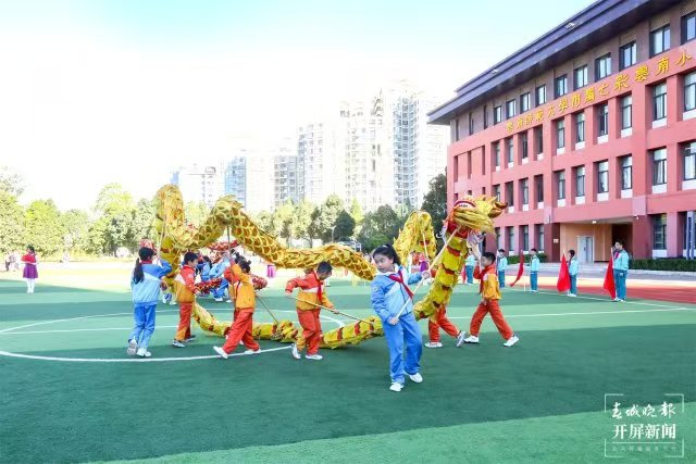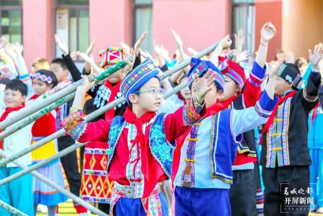 “在推动思政教育创新的过程中,学校充分利用环境育人功能,打造了一系列寓教于乐的场景化教学模式。通过创设情景,让学生在真实体验中感受中华文化的深厚底蕴,激发爱国情怀,提升道德素养,实现全面发展。”师大附属七彩云南小学党支部书记、校长彭文冲说,薪火相传,弦歌不辍。我们传承着西南联大刚毅坚卓的精神,作为小学,我们将继续深化思政课程改革,着力挖掘并整合优质教育资源,将铸牢中华民族共同体意识贯穿于日常教学之中,尤其注重引导小学生树立正确的国家观、民族观、历史观和文化观。例如,大课间的竹竿舞活动,不仅锻炼了孩子们的身体,更让他们在欢笑声中接触到了少数民族的传统文化,体会到了多元文化的魅力,从而促进各民族间的相互了解与尊重,培养了深厚的民族自豪感与归属感。