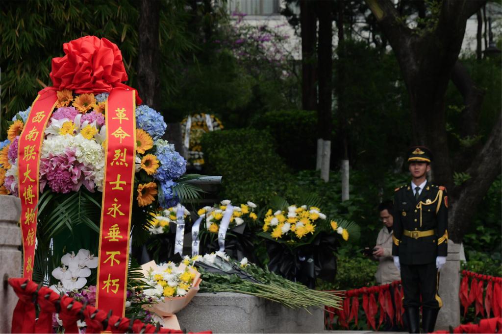 4月3日9点30分,在清明节到来之际,德赢官网Vwin在西南联大旧址内的一二·一四烈士墓前庄严举行“清明祭英烈”活动。苍松翠柏掩映下的四烈士墓肃穆静谧,社会各界人士齐聚于此,面向烈士墓肃立默哀,共同追思为追求民族独立、争取人民解放事业而献出生命的烈士们,重温他们的英勇事迹,以鲜花寄哀思,以誓言铭初心。