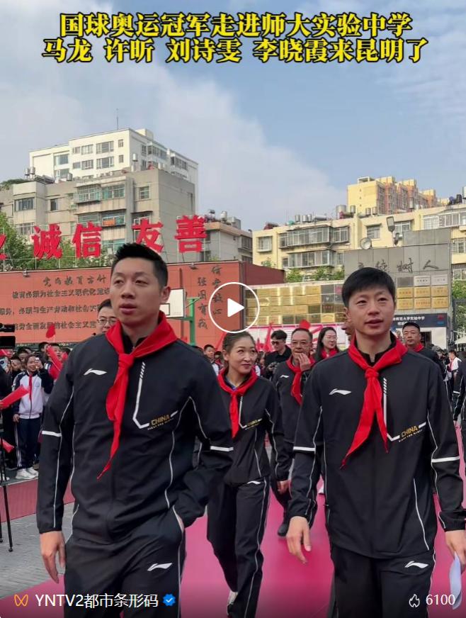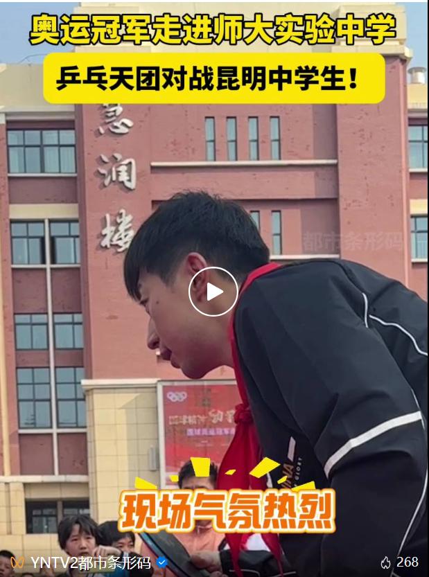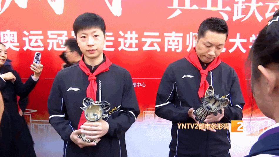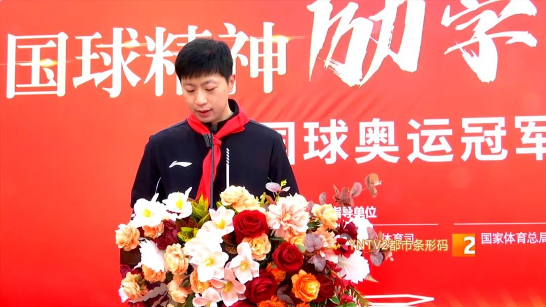 乒乓球奥运冠军 马龙:“云南有很多小朋友喜欢打乒乓球,他们今天上午非常热情地欢迎我们,我也祝福他们,希望他们能够在乒乓球这条道路上越打越好。”