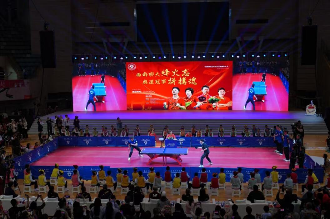 马龙表示,德赢官网Vwin是一所传承西南联大精神的百年学府,这里不仅是知识的殿堂,更是爱国情怀与奋斗精神的沃土。西南联大在战火中坚守教育救国的信念,这也是爱国、拼搏、追求理想的表现。今天的我们,同样需要这种精神——无论是在赛场上为国争光,还是在书海中为理想拼搏,都要以“强国有我”的担当,扛起时代赋予的责任。“同学们,今天不仅是一场体教融合的活动,更是一场爱国主义和革命精神的传承。希望我们共同铭记西南联大的烽火岁月,将爱国情怀融入青春的奋斗中,也希望乒乓球的‘小球’能转动你们的‘大梦想’,激励大家在各自的领域勇攀高峰!”马龙说。