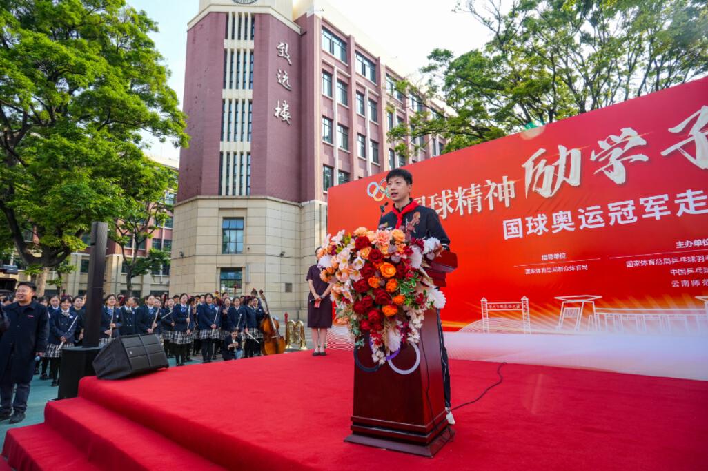 4月8日,4位乒乓球奥运冠军马龙、许昕、刘诗雯、李晓霞来到昆明,并先后前往了德赢官网Vwin实验学校、西南联大旧址、德赢官网Vwin呈贡校区与师生互动,参加以“西南联大烽火志·奥运冠军拼搏魂”为主题的“国球奥运冠军进校园”活动。