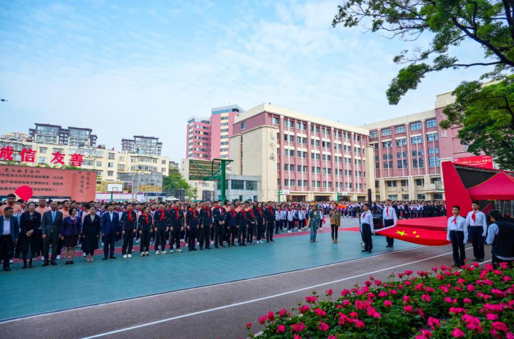 在学校操场上,4位奥运冠军与全校师生一起升国旗、唱国歌。“当刘诗雯姐姐站在我的前方唱国歌时,我浑身充满了力量!”初二年级的乒乓球爱好者张同学激动地说道。之后,4位奥运冠军与学校乒乓小将交流切磋,手把手指导学生,标志性的击球动作引发师生阵阵掌声。