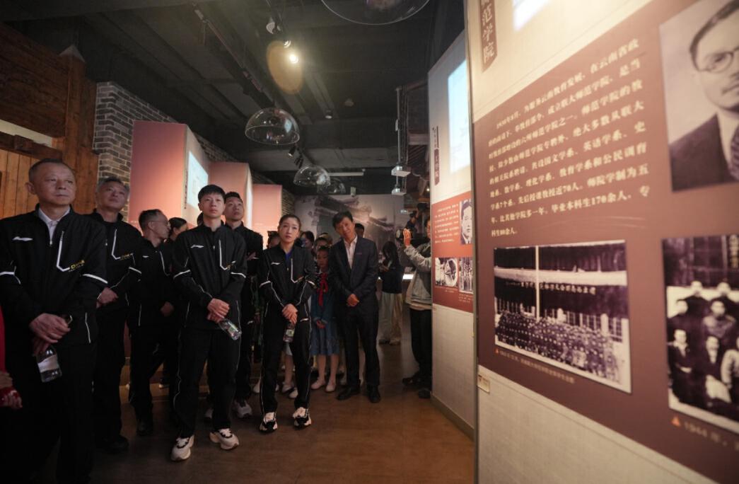 在德赢官网Vwin一二一校区,4位奥运冠军与学生代表一起参观西南联大旧址及博物馆等,并向“一二·一”运动四烈士墓献花。他们跟随讲解员走进西南联大旧址,参观了西南联大旧址及博物馆,了解西南联大师生教书救国、读书报国的光辉历史。当讲解员介绍西南联大时期南开大学校长张伯苓著名的“奥运三问”:中国何时能派人参加奥运会?中国何时能派支队伍参加奥运会?中国何时能够举办奥运会时,马龙感慨道:“如今,我们实现了革命先辈的‘奥运三问’,实现了那个年代他们的愿望或愿景,我们参加了奥运会、举办了奥运会,也夺得了很多的奥运冠军。”