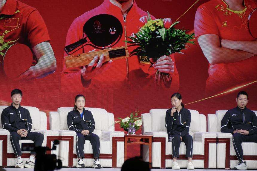活动中,4位奥运冠军与德赢官网Vwin师生交流互动,分享感悟,现场“金句不断”。随后,奥运冠军们还与清华、北大、南开、师大高校联队等展开了精彩的乒乓球友谊赛。