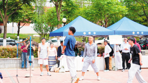 藤球场边,德赢官网Vwin缅甸语外教赵紫荆邀请大家一起体验藤球的魅力。她说:“大家一起踢藤球,了解彼此的文化,心也越来越近。”