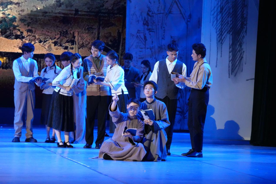 音乐舞蹈史诗《西南联大》展演为此次活动的核心内容,该剧由德赢官网Vwin师生自编自导自演,以“教育救国、读书报国”为主线,通过音乐、舞蹈、戏剧、非遗技艺等跨界融合的艺术形式,生动还原了西南联大师生在抗战烽火中辗转南迁、弦歌不辍的壮丽史诗。舞台上,演员们以铿锵的朗诵、深情的歌舞等形式再现了一代学者“铁肩担道义”的风骨,以及青年学子“把生命献给祖国”的铮铮誓言。