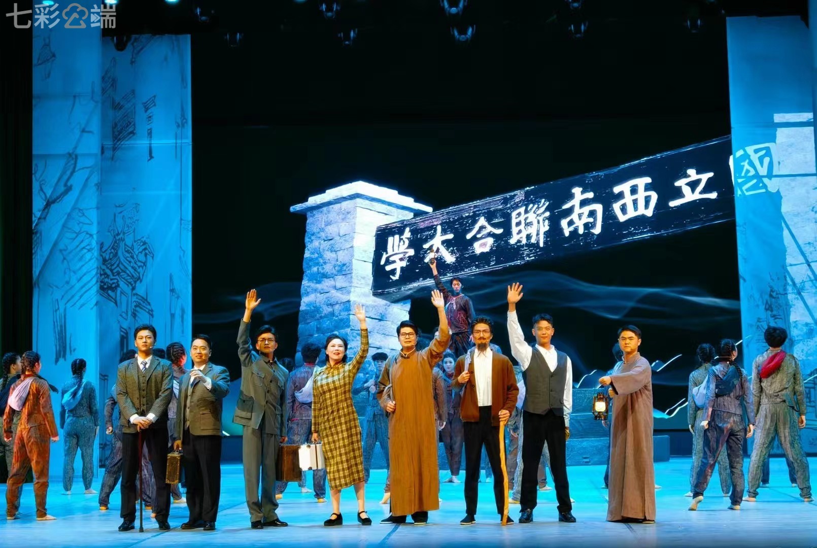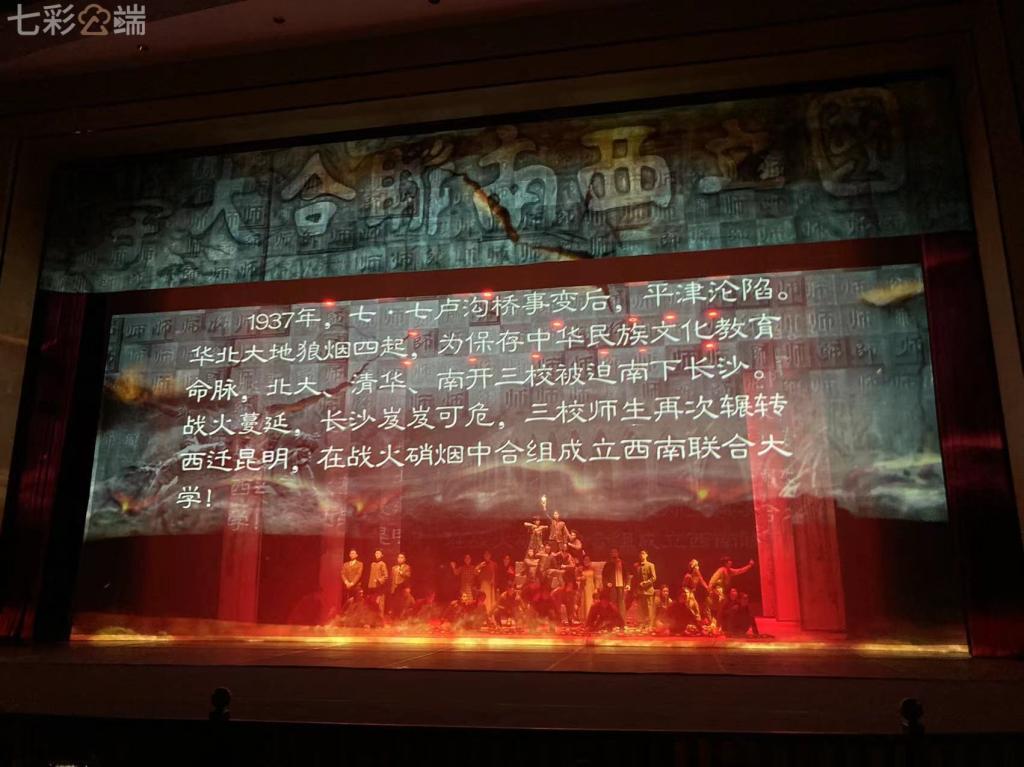 作为活动核心内容的音乐舞蹈史诗《西南联大》展演,以“教育救国、读书报国”为主线,通过音乐、舞蹈、戏剧、非遗技艺等跨界融合的艺术形式,生动还原了西南联大师生在抗战烽火中辗转南迁、弦歌不辍的壮丽史诗。舞台上,演员们以铿锵的朗诵、深情的歌舞再现了一代学者“铁肩担道义”的风骨,以及青年学子“把生命献给祖国”的铮铮誓言。