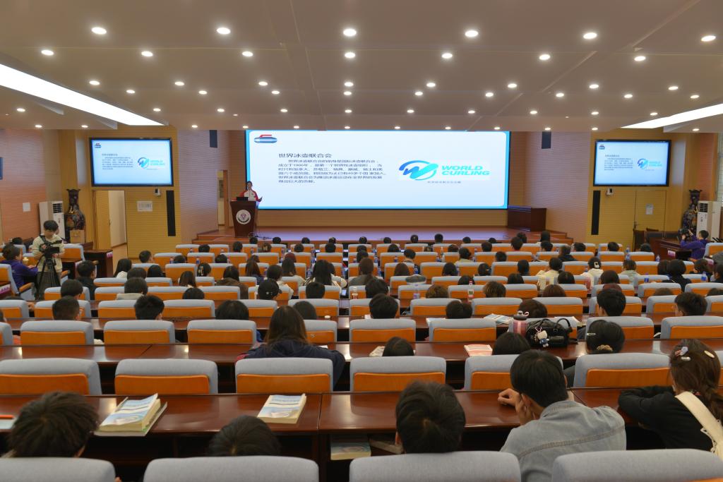 在随后的专题讲座中,中国冰壶队优秀青年运动员代表张佳奇、费学清、韩雨三位队员,系统介绍了国家冰壶队的建队历程和冰壶运动的基本知识,并通过精彩的影像资料展示了冰壶运动的魅力。在互动环节中,学生代表与冰壶健儿们近距离交流,热烈的问答互动激发了大家对冰壶运动的浓厚兴趣。队员们还分享了各自拼搏奋进的成长故事,将现场气氛推向高潮。