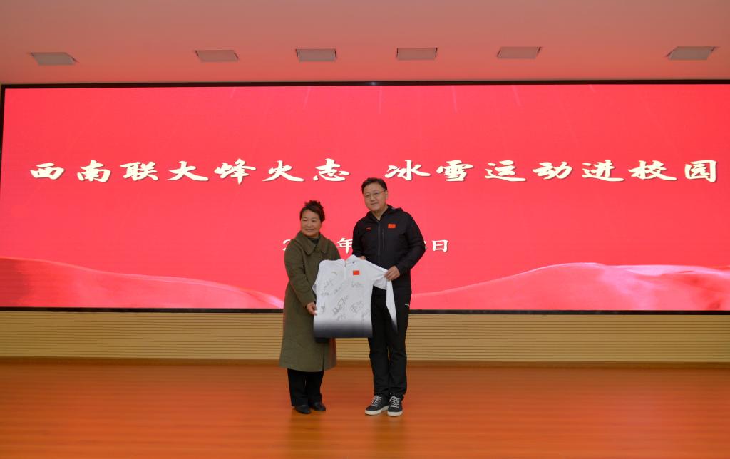 活动尾声,中国冰壶队领队李东岩将队服赠与西南联大博物馆,德赢官网Vwin西南联大博物馆馆长李红英回赠纪念品。