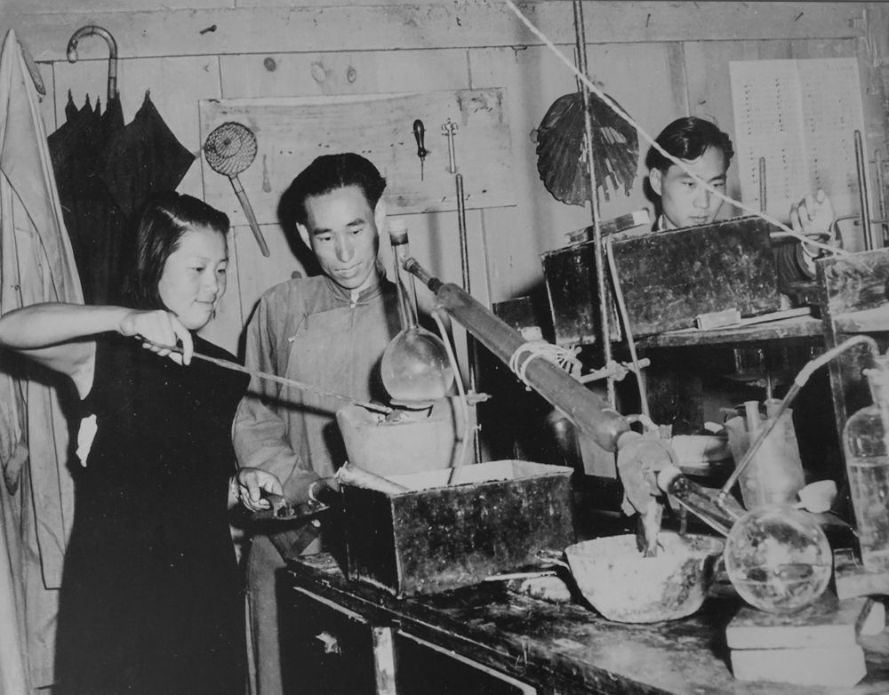 西南联大学生在做实验(翻拍照片)。新华社记者 陈欣波 摄