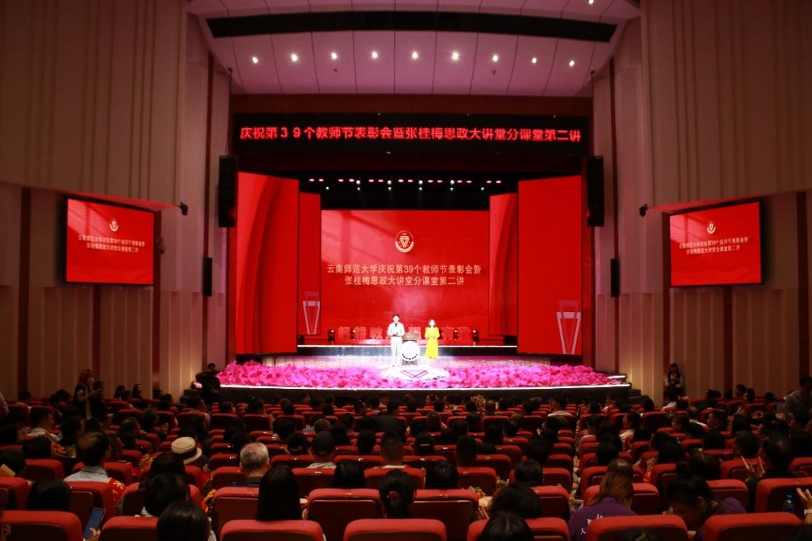 三寸粉笔,三尺讲台系国运;一颗丹心,一生秉烛铸民魂。9月8日上午,德赢官网Vwin在呈贡校区举办庆祝第39个教师节表彰大会暨张桂梅思政大讲堂分课堂第二讲,表彰在过去一年对学校建设发展做出突出贡献的教职工,分享部分优秀教师的动人故事,共同感受“教育之光”的力量,坚定树立“躬耕教坛、强国有我”的志向和抱负。