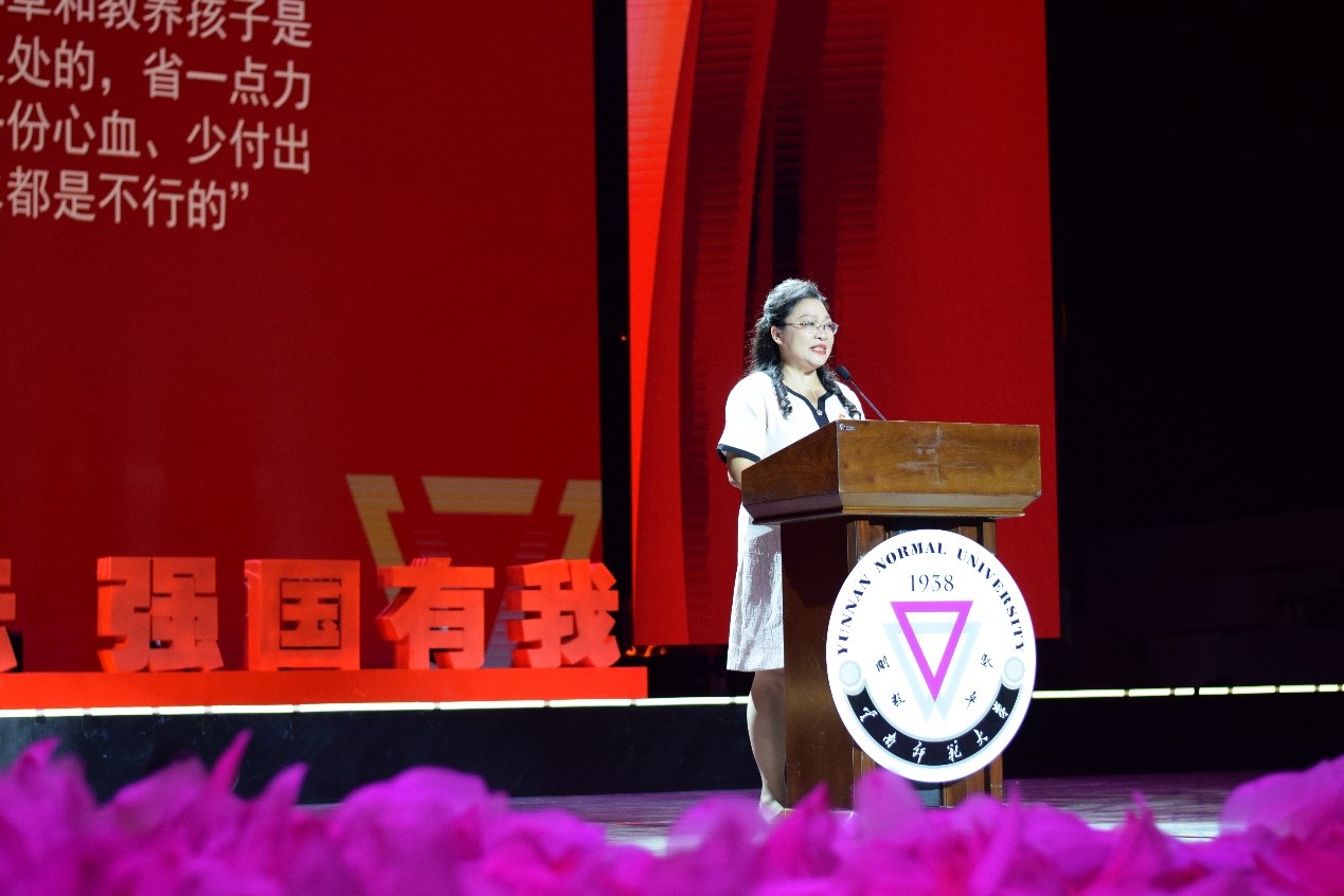 “我走在信仰的路上,是太多爱,让我走下去、活下去,为爱而活,为无数跳动的心而活。这就是来时的路,这就是信仰不断增长的力量。”2022年9月,云南省话剧院排演的话剧《桂梅老师》获得了中国戏剧最高奖——文华大奖。剧中张桂梅老师的扮演者之一、国家二级演员杨晶老师来到活动现场,为广大师生带来话剧独白片段《信仰的力量》。